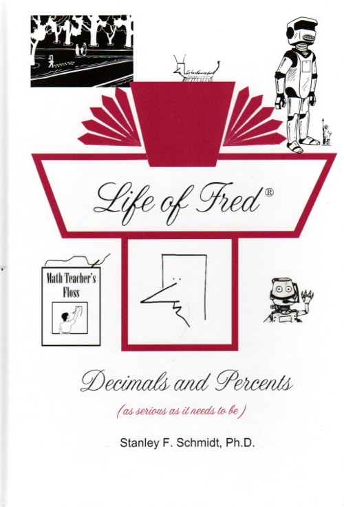 Life of Fred Decimals and Percents $24 : Number Systems, Adding and Subtracting Decimals, Multiplying by Ten, Functions and Inverse Functions, Pi, Multiplying Decimals, Whole Numbers, Squaring a Number, Subtracting Mixed Units, Sets and Subsets, Union and Intersection of Sets, Rules of Divisibility, Division of Decimals, Repeating Decimals, Bar Graphs, Prime and Composite Numbers, Consecutive Numbers, the Goldbach Conjecture, Area of a Circle, Dollars vs. Cents, Pie Charts, Conversion between Percents/ Fractions/ Decimals, 40% of 15, 30% off, Distance Equals Rate Times Time, 15% more, Area of a Triangle, Square Roots, Area of a Parallelogram, 13 Is What Percent of 52, Ratio, Ordered Pairs, Graphing, Negative Numbers, Elapsed Time, Probability. ISBN: 978-0-9791072-0-7, hardback, 192 pages. $24